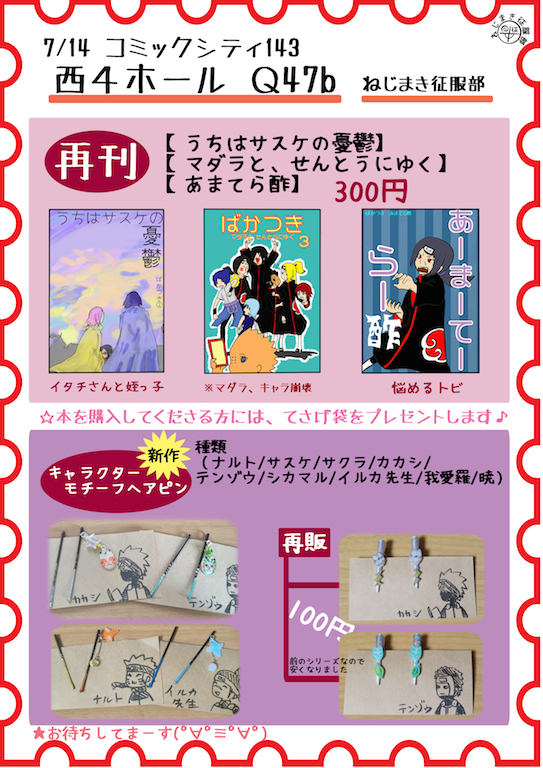 7/14 コミックシティ143に参加します!