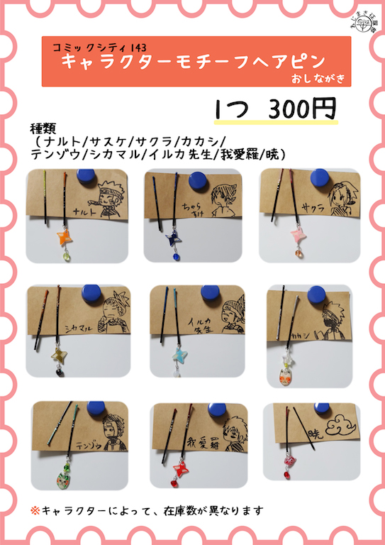 キャラクターによって在庫数が異なります
